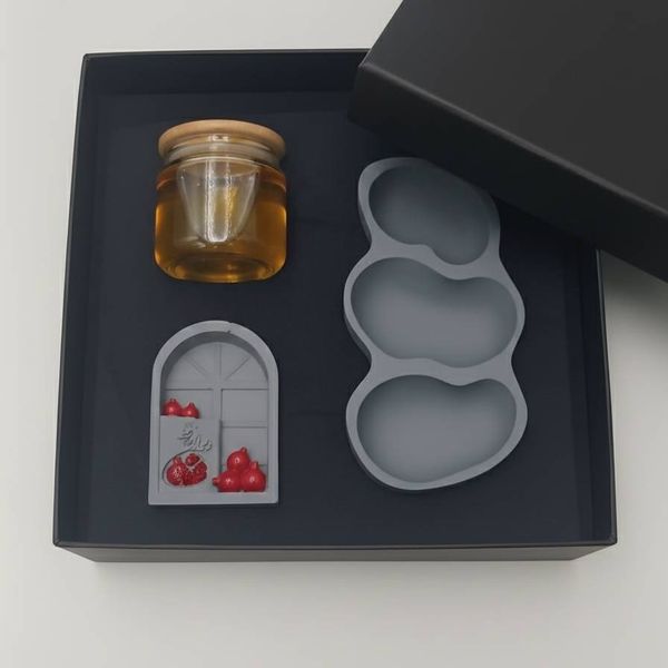 دکور انار یلدا: مجسمهای هنری به شکل درب سنتی با انارهای سرخ و درخشان، نماد باروری، شادی و آغاز زمستان. این قطعهی تزئینی، جعبه را به یک اثر هنری تبدیل میکند و لحظات یلدا را جاودانه میسازد.